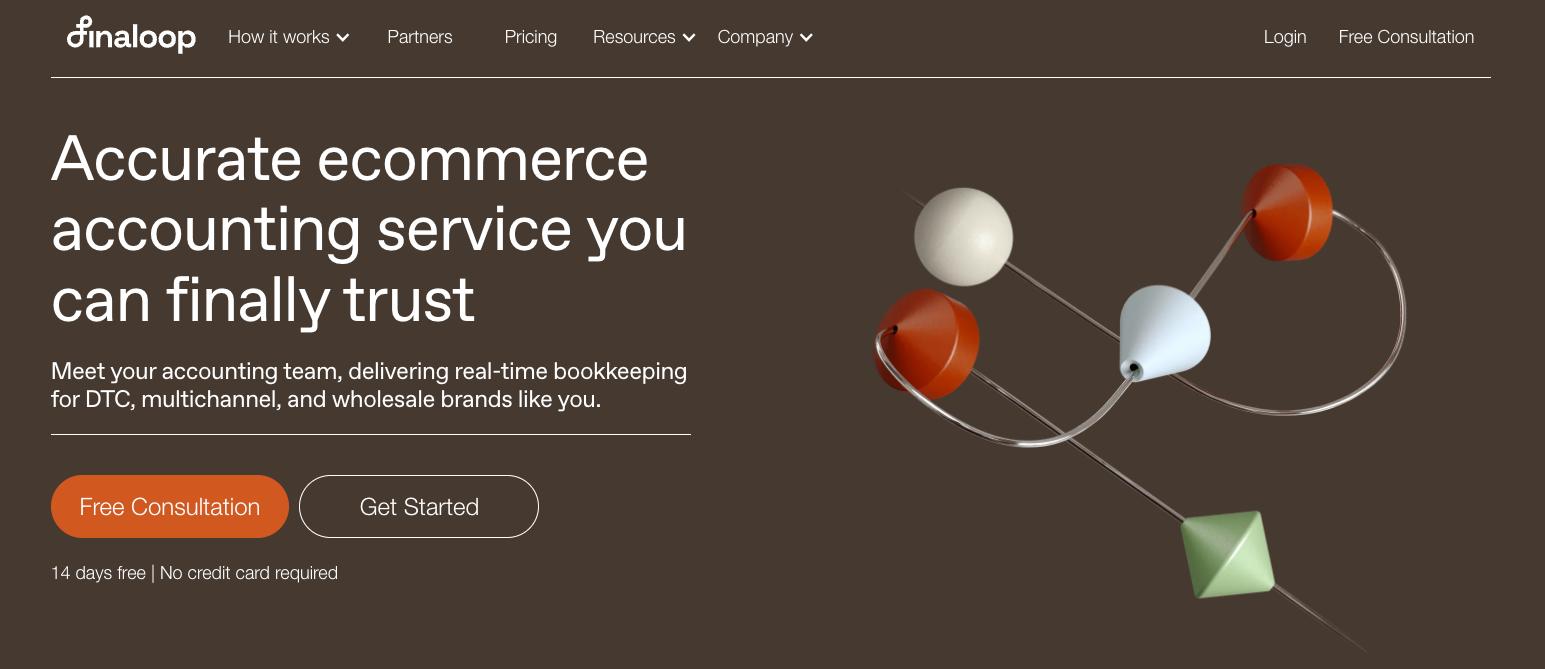 Finaloop isn't typical accounting software. It's built to solve the problems general account software can't handle. Its ecommerce-native accounting service combines automated bookkeeping with a team of human accountants specializing in DTC brands.