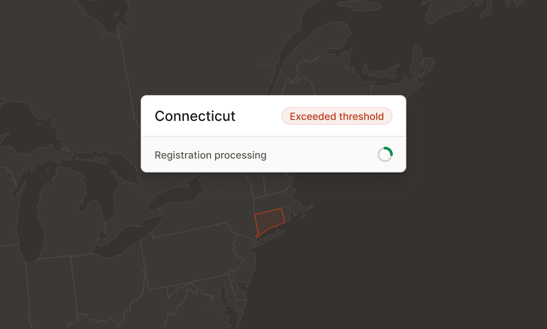 The second is click-through nexus. A remote seller is presumed to have nexus when it enters into a commission-based agreement with a Connecticut-based person who refers customers to the seller, and gross receipts from those referrals exceed $100,000 in the prior four quarterly periods. The four quarterly periods end on the last day of March, June, September, and December. The presumption can be rebutted by demonstrating that the Connecticut-based referrer did not engage in constitutionally sufficient nexus-creating activities on the remote seller's behalf.